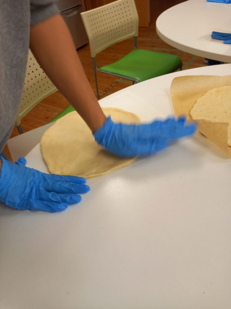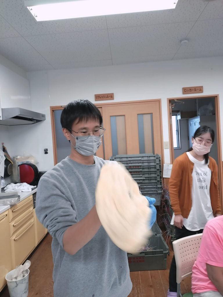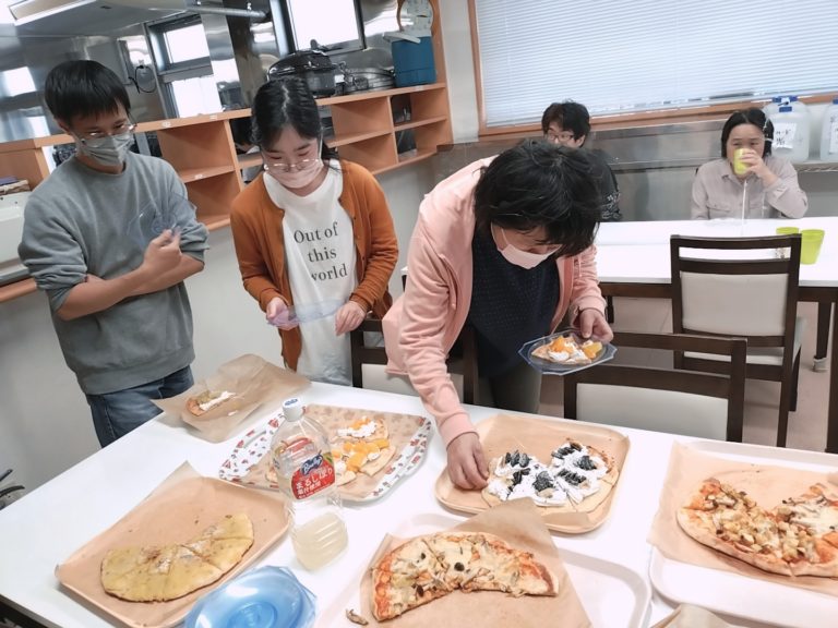 ピザ作りは初めて・・・とのことでしたが、皆さん上手に生地を広げ、トッピングをしてくれました(^^♪