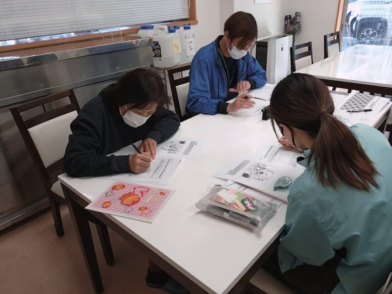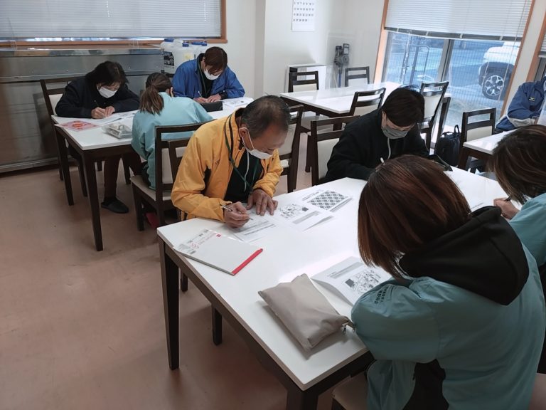 今回参加した職員8名を2グループに分け、演習を行い1つのイラストについて、