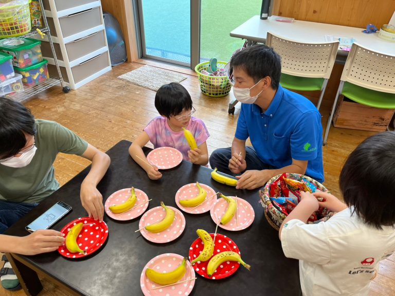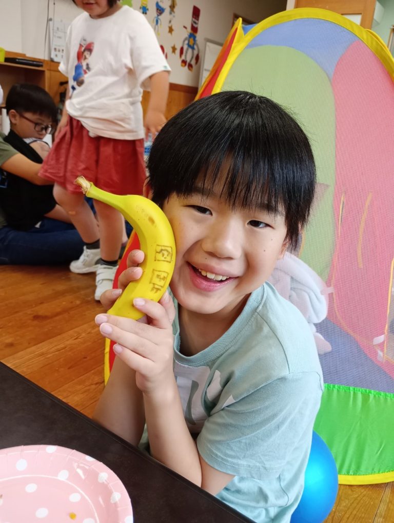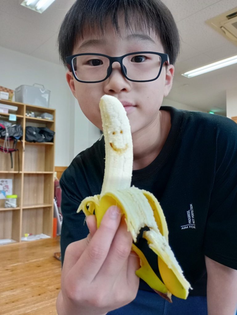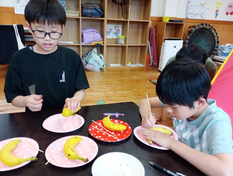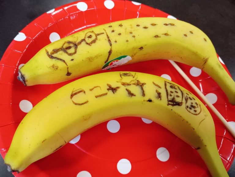 爪楊枝で絵や文字をバナナに書きました!