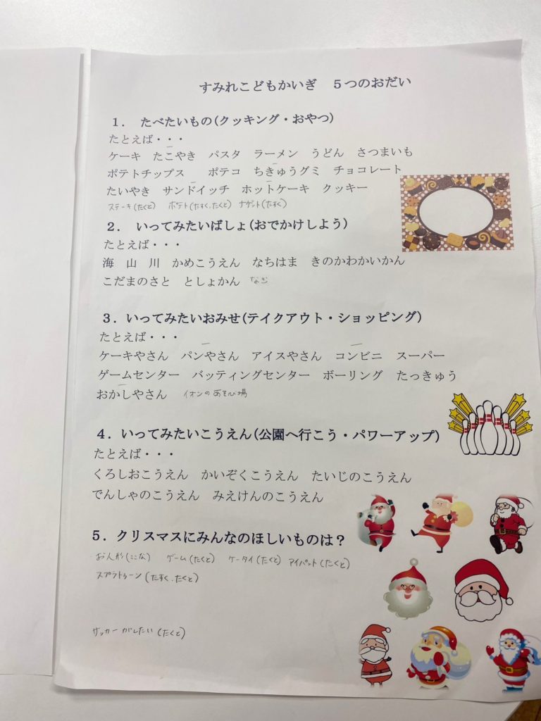 すみれでは子供たちの声をよりダイレクトに活動に反映させたいと思い今月からこどもかいぎを行うことにしました( *´艸`)