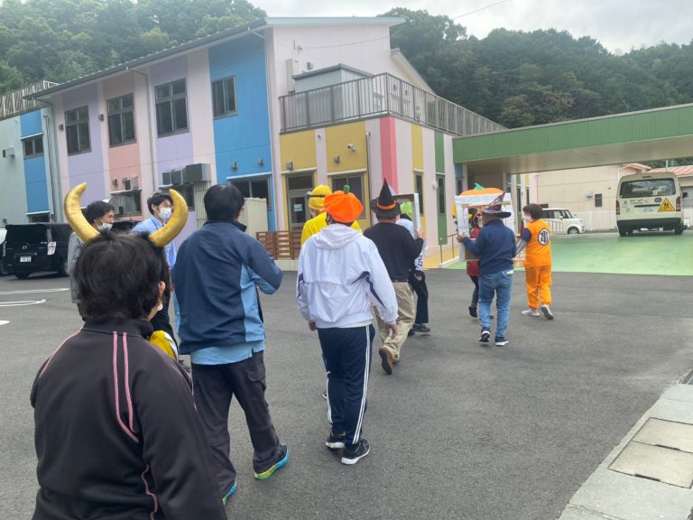 仮装をして👗子供たちにお菓子をプレゼントしに向かってます(#^.^#)