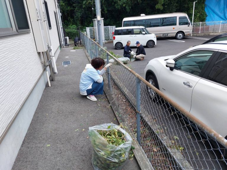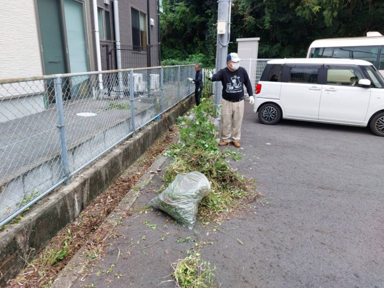 今回はボランティア活動で近隣の草引きを行いました。