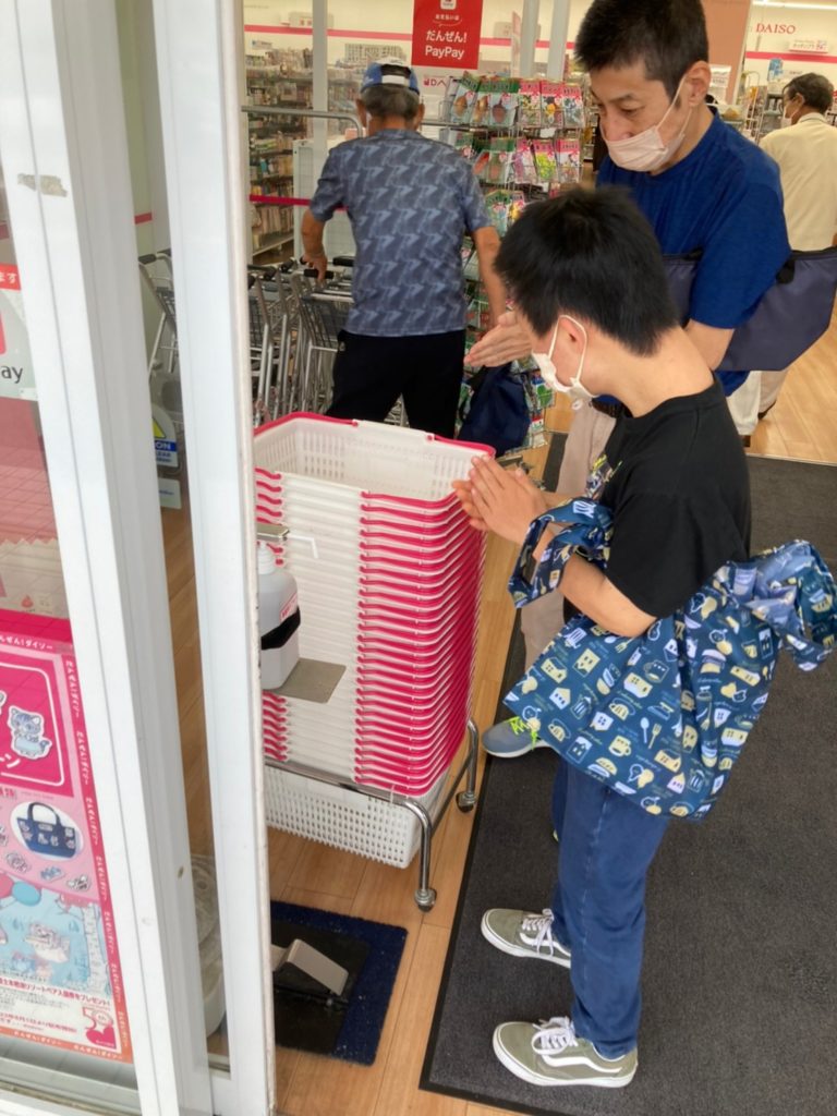 ダイソー入口でしっかりアルコール消毒をして入店~