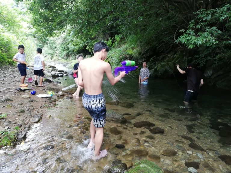 今回は木ノ川区民会館をかりて近くの川で水遊びをしました🎵