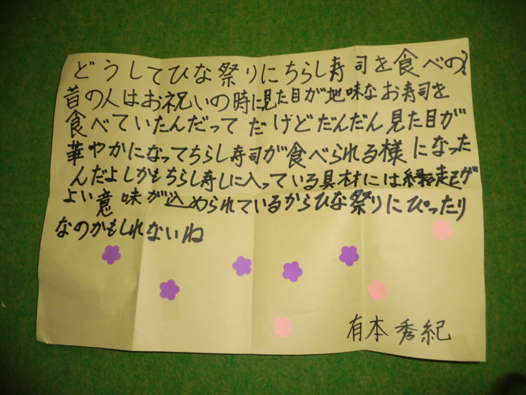 なぎの木園では、ちらし寿司🍣、どん兵衛🍜食べました。