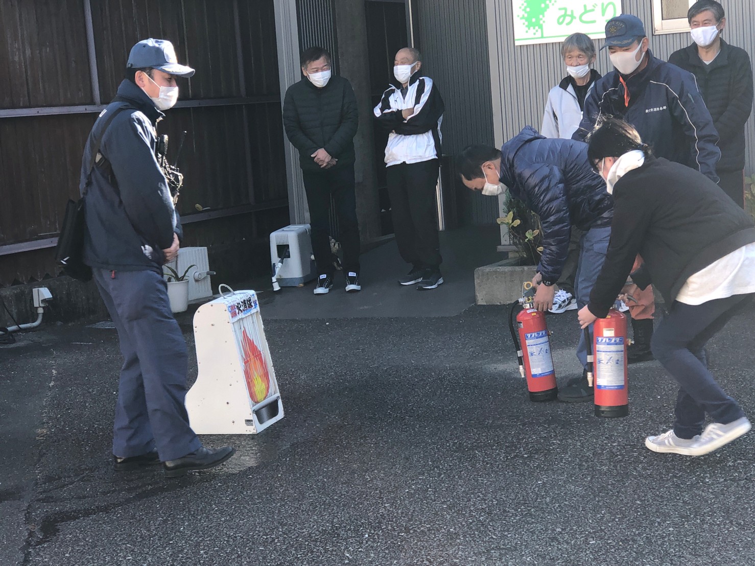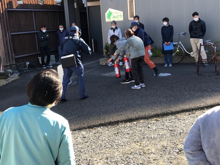 消火器使用方法を学び、実際に消火器訓練を利用者さん・職員が一緒に学びました(*^^)