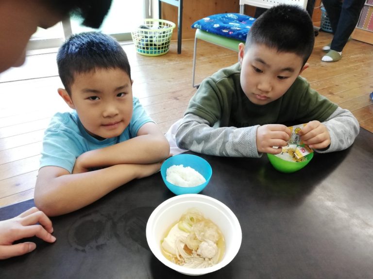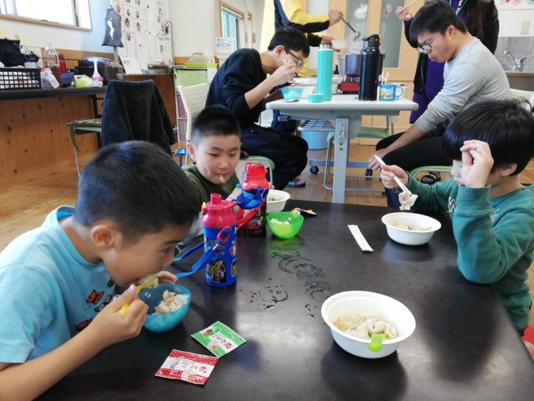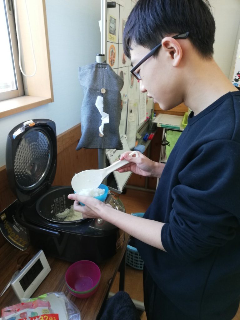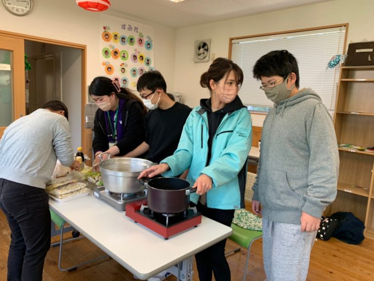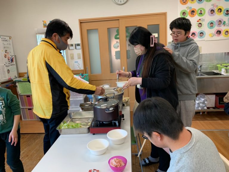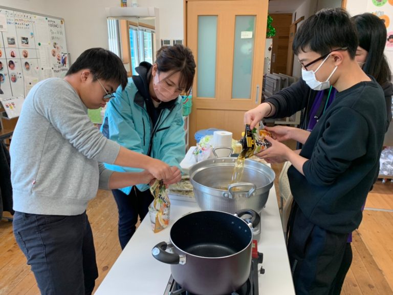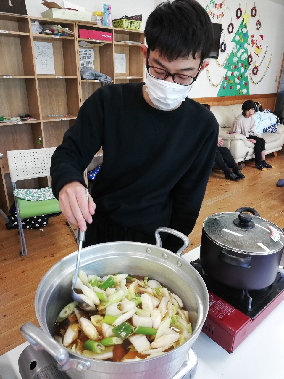 中学生のお兄さん達を中心に鍋作りのお手伝い♪