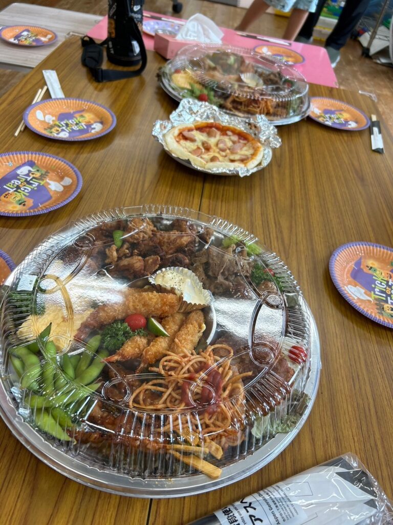 お昼ご飯はみんなの食べたいものを聞き『なおちゃん弁当』にお願いして、オードブルを作って頂きました。