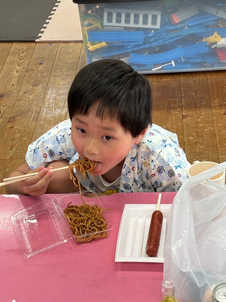 まずは子どもたちの好きなフランクフルト・焼きそば・ジュース