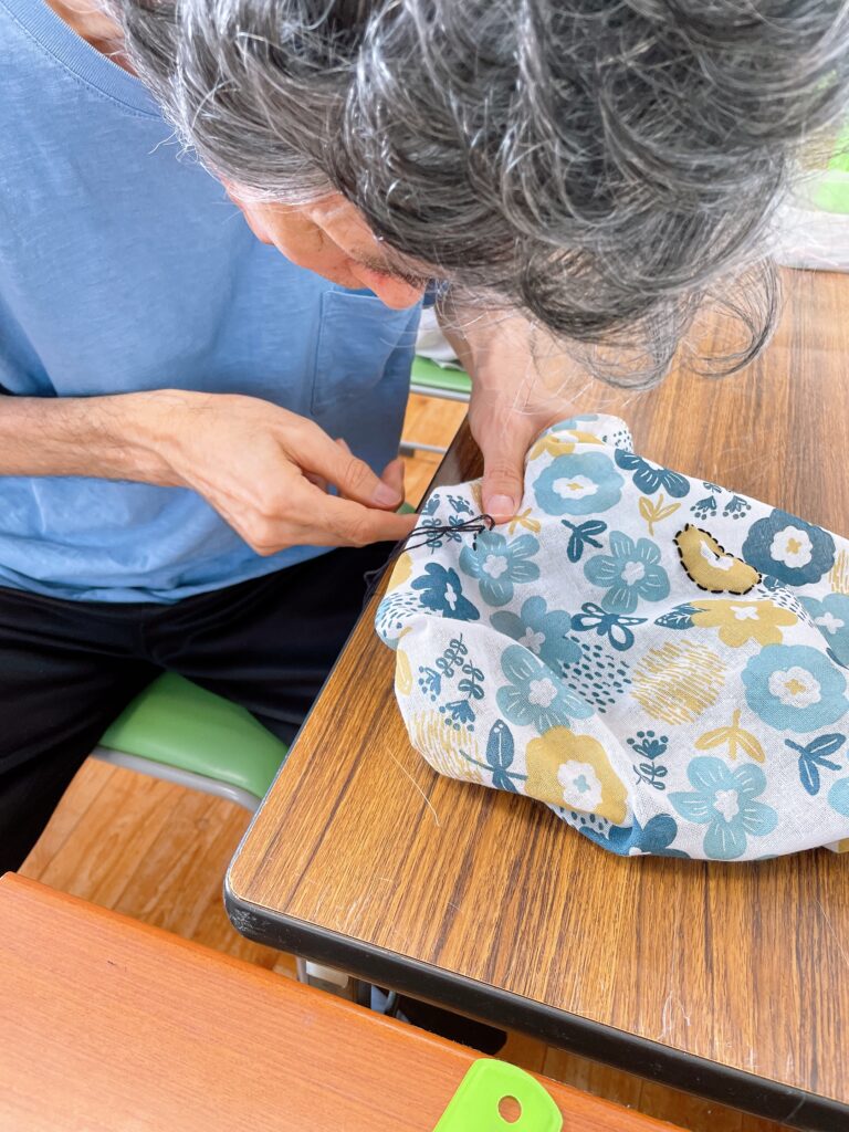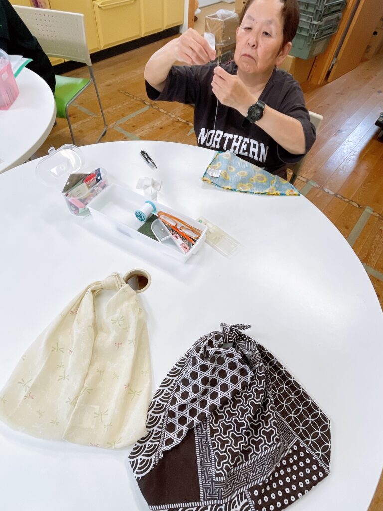 ↓こちらは手芸に取り組んでいます。今は手ぬぐいをバッグにしています。