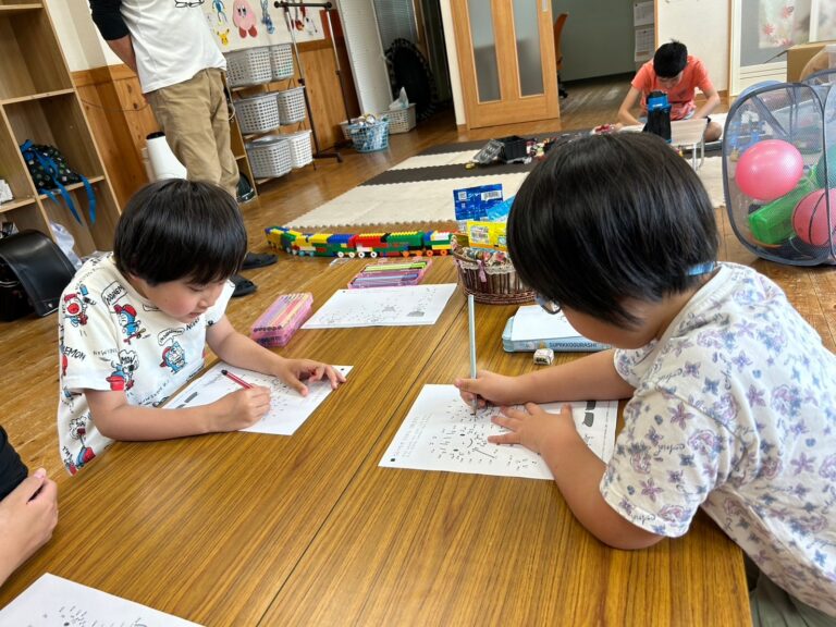 言葉探しや線つなぎ色々考え取り組んでいます。